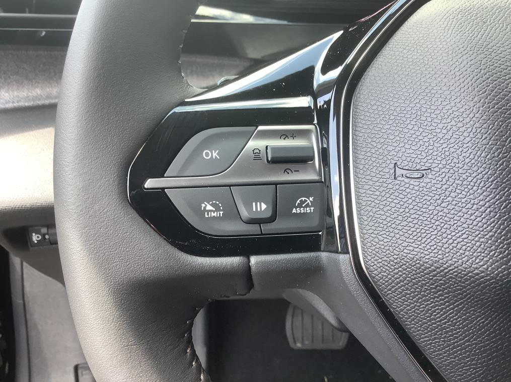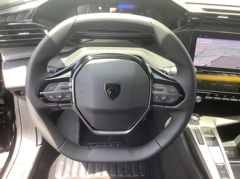 2 prises USB-C a l'AV, 2 telecommandes 3 boutons, 4 poignees de maintien, ABS, Accoudoir central AV avec compartiment de rangement, Active Safety Brake (freinage automatique d'urgence), Aide au stationnement AR, Aide au stationnement AV, Air conditionne automatique bi-zone, Air Quality System, Airbags frontaux conducteur et passager adaptatifs (passager neutralisable par cle), airbags, Alerte active de franchissement involontaire de ligne et bas cote, Alerte attention conducteur, Allumage automatique des feux de croisement, Bandeau entre feux AR Noir brillant, Banquette AR rabattable 1/3-2/3, Calandre AV Noir avec inserts chromes et ecopes Noir, Camera de recul, Commutation automatique des feux de route, Coques de retroviseurs exterieurs Noir Brillant, Demarrage mains libres, Diffuseurs d'air aux places AR, Ecran central tactile 10", ESP avec fonction Hill Assist (Aide au demarrage en pente), Essuie-vitre AV a declenchement automatique, Feux diurnes a LED sous projecteurs nouvelle signature Peugeot, Fonction Mirror Screen (Apple CarPlay/Android Auto) sans fil, Frein de stationnement electrique, Garnissage tri-matieres TEP/Tissu Falgo, surpiqures Bleu, Jantes alliage 17'' Calgary diamantees, Jupe AR Noir Brillant avec decors chromes, Lecheurs de vitres Noir Brillant, Leve-vitres electriques AV/ AR et sequentiels avec anti-pincement, Pack Drive Assist - Regulateur de vitesse adaptatif avec fonction Stop&Go : Regulateur de vitesse adaptatif avec fonction Stop&Go, Pack Safety Plus : Active Safety Brake pilote par camera et radar, Peugeot i-Cockpit avec combine d'instrumentation numerique 10'' personnalisable, Planche de bord avec jonc transversal peint et decor textile Texa, Projecteurs Peugeot LED, Reconnaissance etendue des panneaux de signalisation, Reglage lombaire du siege conducteur, Regulateur et limiteur de vitesse, Retroviseur interieur photosensible, Retroviseurs exterieurs avec eclairage d'approche, Retroviseurs exterieurs electriques, degivrants et rabattables electriquement, avec repetiteurs de, Selecteur mode de conduite Eco et Sport, Siege conducteur reglable en hauteur, Siege passager reglable en hauteur, Systeme stop & go couple avec l'assistance au positionnement sur la voie, Vitres AV electriques, Vitres laterales AR et lunette AR surteintees, Volant avec reglage manuel en hauteur et en profondeur, Volant croute de cuir