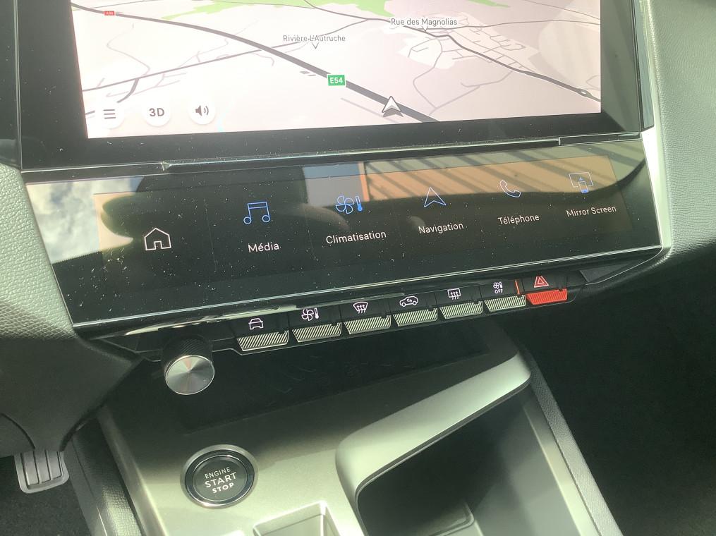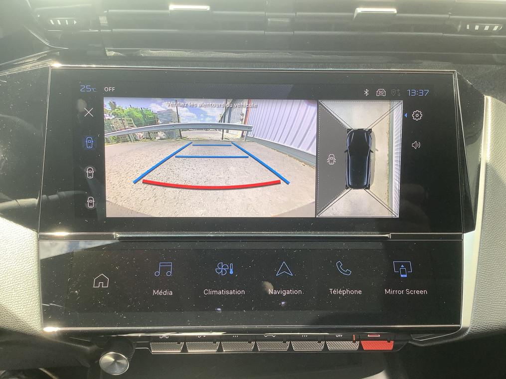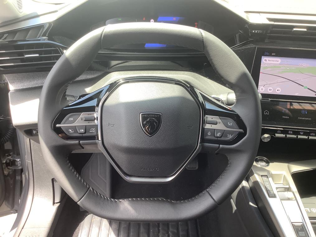 2 prises USB-C a l'AV, 2 telecommandes 3 boutons, 4 poignees de maintien, ABS, Accoudoir central AV avec compartiment de rangement, Active Safety Brake (freinage automatique d'urgence), Aide au stationnement AR, Aide au stationnement AV, Air conditionne automatique bi-zone, Air Quality System, Airbags frontaux conducteur et passager adaptatifs (passager neutralisable par cle), airbags, Alerte active de franchissement involontaire de ligne et bas cote, Alerte attention conducteur, Allumage automatique des feux de croisement, Bandeau entre feux AR Noir brillant, Banquette AR rabattable 1/3-2/3, Calandre AV Noir avec inserts chromes et ecopes Noir, Camera de recul, Commutation automatique des feux de route, Coques de retroviseurs exterieurs Noir Brillant, Demarrage mains libres, Diffuseurs d'air aux places AR, Ecran central tactile 10", ESP avec fonction Hill Assist (Aide au demarrage en pente), Essuie-vitre AV a declenchement automatique, Feux diurnes a LED sous projecteurs nouvelle signature Peugeot, Fonction Mirror Screen (Apple CarPlay/Android Auto) sans fil, Frein de stationnement electrique, Garnissage tri-matieres TEP/Tissu Falgo, surpiqures Bleu, Jantes alliage 17'' Calgary diamantees, Jupe AR Noir Brillant avec decors chromes, Lecheurs de vitres Noir Brillant, Leve-vitres electriques AV/ AR et sequentiels avec anti-pincement, Pack Drive Assist - Regulateur de vitesse adaptatif avec fonction Stop&Go : Regulateur de vitesse adaptatif avec fonction Stop&Go, Pack Safety Plus : Active Safety Brake pilote par camera et radar, Peugeot i-Cockpit avec combine d'instrumentation numerique 10'' personnalisable, Planche de bord avec jonc transversal peint et decor textile Texa, Projecteurs Peugeot LED, Reconnaissance etendue des panneaux de signalisation, Reglage lombaire du siege conducteur, Regulateur et limiteur de vitesse, Retroviseur interieur photosensible, Retroviseurs exterieurs avec eclairage d'approche, Retroviseurs exterieurs electriques, degivrants et rabattables electriquement, avec repetiteurs de, Selecteur mode de conduite Eco et Sport, Siege conducteur reglable en hauteur, Siege passager reglable en hauteur, Systeme stop & go couple avec l'assistance au positionnement sur la voie, Vitres AV electriques, Vitres laterales AR et lunette AR surteintees, Volant avec reglage manuel en hauteur et en profondeur, Volant croute de cuir