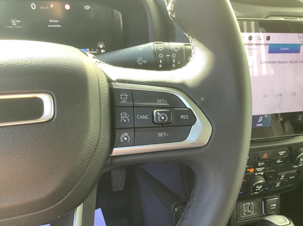 6 airbags, Accoudoir central coulissant, Affichage de la pression des pneus, Aide au stationnement AV et AR, Alerte anticollision avec arret a faible vitesse, Alerte de franchissement de ligne avec correction, Barres de toit longitudinales Noir, Calandre noir mat avec cerclages d'ouies argent, Camera de recul, Capteur de luminosite, Capteur de pluie, Climatisation automatique bi-zone, Combine d'instrumentation numerique configurable a ecran TFT de 10,25", Commutation feux de croisement / feux de route automatique, Controle electronique de la stabilite ESC et aide au demarrage en cote, Coques de retroviseurs exterieurs noires, Degivrage des essuie-glace AV, Detecteur de somnolence, Enter-N-Go : systeme d'ouverture et de demarrage sans cle, Feux Full LED (feux de jour, de croisement, de route, antibrouillard, AR), Frein de stationnement electrique, Jantes alliage 18" Gloss Black, Jantes alliage 18" Gloss Black 235/50R18, Ouverture et de fermeture des vitres a distance, Pack Hiver, Pack Tech, Park Assist:assistance au stationnement parallele/perpendiculaire avec assistance a la sortie, Prise USB A au 2nd rang, Prise USB type A et C pour passagers AV, Projecteurs antibrouillard AV, Radio numerique DAB avec connexion Bluetooth, 6 HP, commandes au volant, Reconnaissance des panneaux de signalisation, Regulateur de vitesse adaptatif, Regulateur et limiteur de vitesse intelligent, Retroviseur interieur photochromique, Retroviseurs exterieurs rabattables electriquement, Retroviseurs exterieurs reglables electriquement et degivrants, Sellerie en Tissu, Services connectes Uconnect Services, Siege conducteur reglable en hauteur, Siege conducteur reglage lombaire electrique, Siege passager rabattable a plat, Sieges AV chauffants, Surveillance de l'angle mort et Systeme de detection de presence AR, Systeme anti-louveoiment de la remorque, Systeme d'infodivertissement Uconnect a ecran tactile 10,1" avec Apple Car Play / Android Auto, Systeme d'infodivertissement Uconnect avec navigation GPS a ecran tactile 10,1", Tapis de sol AV, Vitres AV et AR electriques sequentielles, Vitres electriques AV et AR, sequentielles a l'AV, Volant chauffant en cuir, Volant reglable en hauteur et en profondeur
