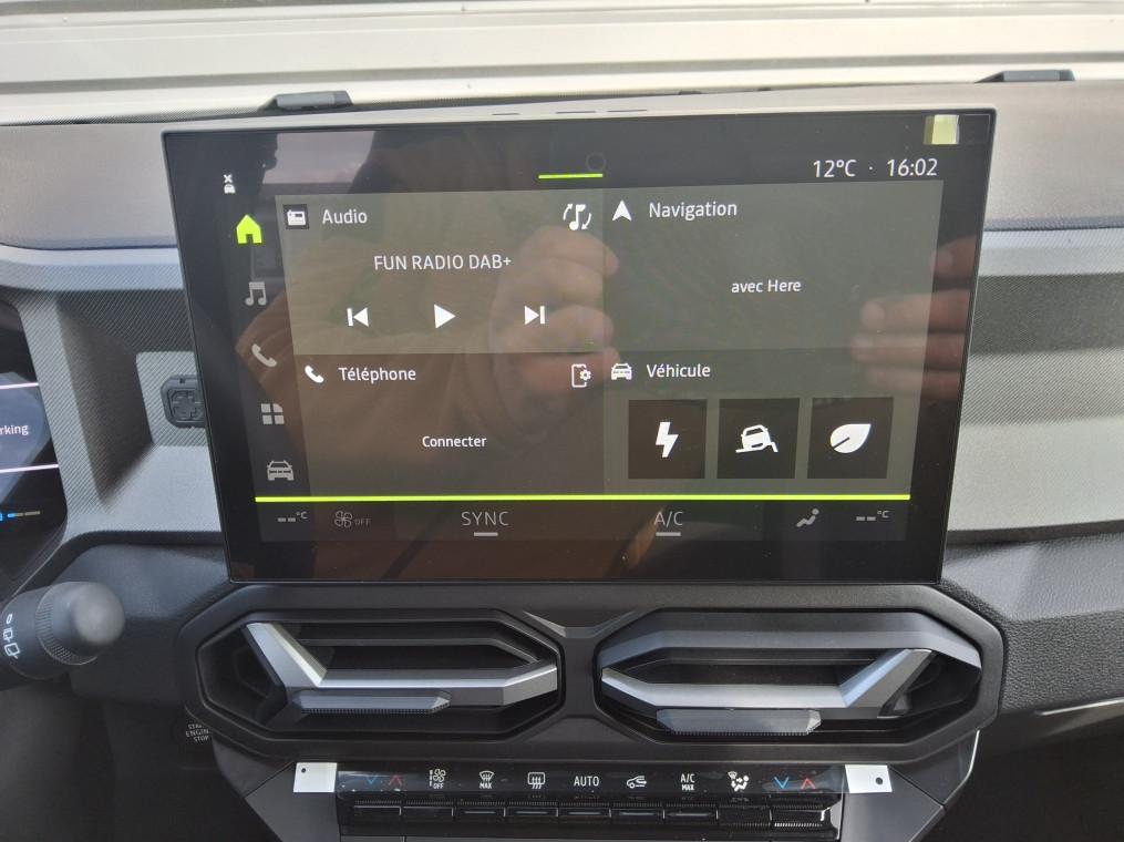 Airbag AV conducteur et passager, Airbag passager deconnectable, Airbags lateraux AV et rideaux, Alerte franchissement de ligne et assistant maintien dans la voie, Allumage des feux automatique et essuie-glace automatiques, Antenne requin, Appel SOS (E-call), Avertissement distance de securite, Banquette AR 40/20/40 et fonction Easy Fold 60/40, Barres de toit longitudinales, Boite de vitesse automatique 6, Boucliers ton carosserie, Camera de recul, Carte mains libres, Climatisation automatique bi-zone, Commutation automatique feux de croisement/route, Console Centrale avec porte-gobelets, accoudoir et rangement refrigere, Coques de retroviseurs Gris Megalithe, Detection de perte de pression des pneus, Feux de croisement a LED, Frein de parking electrique, Jantes alliage diamantees 18'' TAGASAN, Kit de gonflage, Leve-vitres AR electriques, Leve-vitres AV electriques, Media Nav Live ( Navigation avec trafic en temps reel + Systeme audio 3D Arkamys, 6HP, ecram 10,1"), Mode eco, My Safety Switch (bouton de deconnexion des aides a la conduite), Peinture opaque, Plancher de coffre plat, Prise 12V coffre, Radars de recul, Recharge smartphone par induction, Reconnaissance des panneaux de signalisation avec alerte de survitesse, Regulateur de vitesse adaptatif, Repetiteurs lateraux a LED, Retroviseur interieur jour/nuit, Retroviseurs exterieurs electriques, degivrants et rabattable electriquement, Sellerie tissu avec logo Dacia, Siege conducteur semi - electrique, Signature lumineuse en "Y" a LED, Systeme anti-blocage des roues (ABS), Systeme de controle de traction (TCS), Systeme de controle de trajectoire (ESC) et aide au demarrage en cote, Systeme de fixation Isofix, Systeme de freinage d'urgence avance (pieton, deux-roues et intersection), Systeme de surveillance de l'attention du conducteur, Tableau de bord digital 10", Verrouillage centralisee, Vitres AR surteintees, Volant reglable en hauteur et en profondeur, Volant Soft Feel