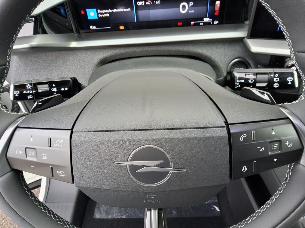 1 port USB-C AV, 2 cles a telecommandes 3 boutons (verrouillage, coffre, deverrouillage), 3 prises 12V (AV/AR et coffre), 5 appuis-tete reglables en hauteur, 6 HP, Accoudoir central AV, Aide au stationnement AV/AR, Air conditionne automatique bi-zone avec filtre a polen et aerateurs AV/AR, Airbags frontaux et lateraux conducteur et passager AV, rideaux (6 airbags), Alerte de sous-gonflage des pneumatiques, Apple CarPlay et Android Auto sans fil, Appuis tete AV reglables sur 2 voies, Banquette AR avec dossier rabattable 40/20/40, Bluetooth 2 canaux, Boite a gants refrigeree, Boite automate sequentielle 6 rapports, Calandre Opel Vizor 3D, Console centrale avec porte gobelet, Controle de traction electronique (TCS), Controle electronique de stabilite (ESP), Coque de retroviseurs exterieurs noires, Decor interieur Gris Litosphere, Decors exterieurs Gris Anthra, Detection de non-bouclage des ceintures de securite aux places AV/AR, Ecran d'instrumentation digitale de 10", Ecran infotainment de 10", Entree et demarrage sans cle, Fixations Isofix et Top Tether aux places laterales AR, Frein de parking electrique, Kit anti-crevaison, Opel Connect (BTA) avec e-call / b-call, Pack Drive Assist, Pack Visibilite, Pare-brise feuillete acoustique, Pare-soleils avec miroir de courtoisie conducteur et passager AV, Peinture metallisee, Plancher de coffre modulable 2 positions, Radio FM & AM bi-tuner DAB+ (Digital Audio Broadcasting), Retroviseurs exterieurs chauffants et reglables electriquement, Retroviseurs exterieurs rabattables electriquement, Sellerie Tissu Bird - Dominante Noir, Sieges conducteur et passager ergonomiques et reglables sur 6 voies, Sigle Opel AR 3D illumine, Signature lumineuse 3D avec technologie Edge Light, Spoiler AR, Systeme de freinage avec antiblocage des roues (ABS), Toit couleur carrosserie, Verrouillage centralise avec telecommande et en roulant, Vitres AV/AR electriques avec systeme anti-pincement, Volant reglable en hauteur et en profondeur, Volant TEP avec commandes integrees