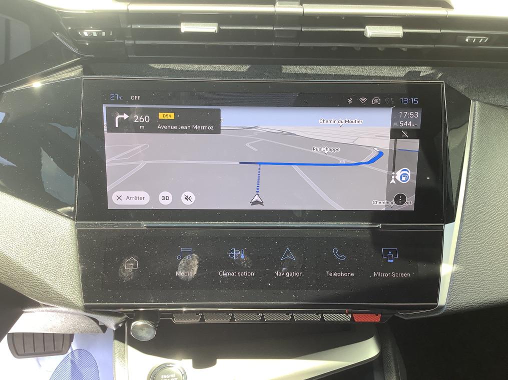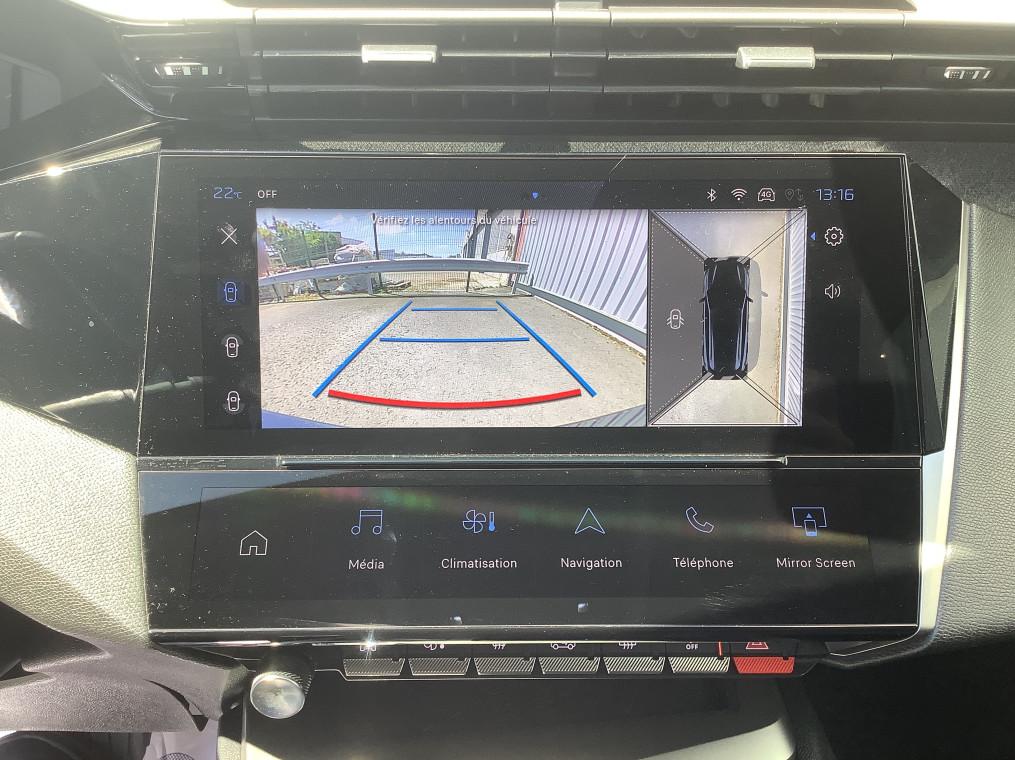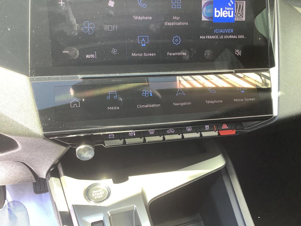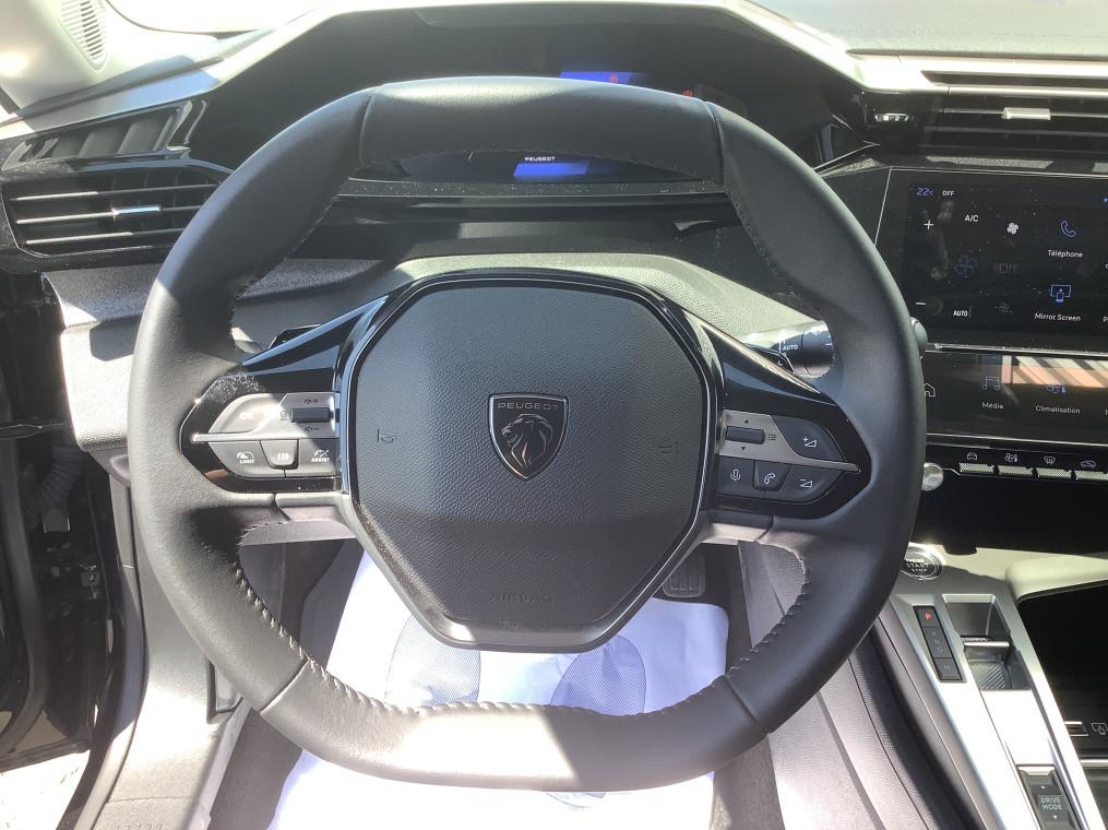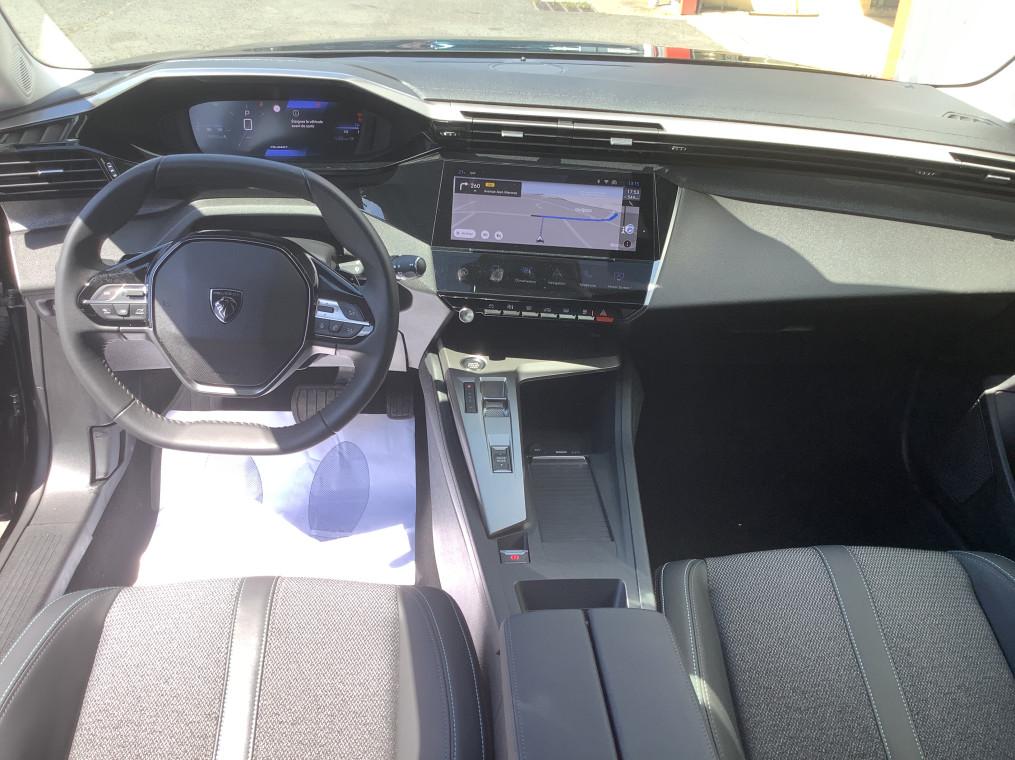 2 prises USB-C a l'AR, 2 prises USB-C a l'AV, 2 telecommandes 3 boutons, 4 poignees de maintien, ABS, Accoudoir central AV avec compartiment de rangement, Active Safety Brake (freinage automatique d'urgence), Aide au stationnement AR, Air conditionne automatique bi-zone, Airbags frontaux conducteur et passager adaptatifs (passager neutralisable par cle), airbags, Alerte active de franchissement involontaire de ligne et bas cote, Alerte attention conducteur, Allumage automatique des feux de croisement, Banquette AR rabattable 40 - 20 - 40 deverrouillable depuis le coffre, Boite de vitesse automatique, sequentielle (6 rapports), Calandre AV Noir avec inserts chromes et ecopes Noir, Camera de recul, Ceintures de securite AR 3 points a enrouleur (x3) avec pretensionneurs et limiteurs d'effort aux, Ceintures de securite AV 3 points a enrouleur, avec pretensionneurs et limiteurs d'effort, Ciel de pavillon clair, Commutation automatique des feux de route, Controle de la pression des pneus, Controle de traction, Coques de retroviseurs exterieurs Noir Brillant, Demarrage mains libres, Detection de sous gonflage, Diffuseurs d'air aux places AR, Direction assistee electrique, Ecran central tactile 10", ESP avec fonction Hill Assist (Aide au demarrage en pente), Essuie-vitre AV a declenchement automatique, Feux diurnes a LED sous projecteurs nouvelle signature Peugeot, Fixations pour 2 sieges enfants ISOFIX, aux places AR, inclus Top Tether, Fonction Mirror Screen (Apple CarPlay/Android Auto) sans fil, Frein de stationnement electrique, Garnissage tri-matieres TEP/Tissu Falgo, surpiqures Bleu, Jantes alliage 17" Halong diamantees, Jupe AR Noir Brillant avec decors chromes, Lecheurs de vitres Noir Brillant, Leve-vitres electriques AV/ AR et sequentiels avec anti-pincement, Lunette AR surteintee, Pack Drive Assist - Regulateur de vitesse adaptatif avec fonction Stop&Go : Regulateur de vitesse adaptatif avec fonction Stop&Go, Pack Safety Plus : Active Safety Brake pilote par camera et radar, Pare-brise teinte feuillete acoustique, Peugeot i-Cockpit avec instrumentation numerique 10" personnalisable, Planche de bord avec jonc transversal peint et decor textile Texa, Prise 12 V a l'AV, Projecteurs Peugeot LED, Reconnaissance etendue des panneaux de signalisation, Reglage lombaire du siege conducteur, Regulateur / Limiteur de vitesse, Retroviseur interieur photosensible, Retroviseurs exterieurs electriques, degivrants et rabattables electriquement, avec repetiteurs de, Retroviseurs exterieurs reglables electriquement, Selecteur mode de conduite Eco et Sport, Sieges AV reglables en hauteur, Systeme stop & go couple avec l'assistance au positionnement sur la voie, Teintes metallisees, Verrouillage centralise, Vitres AV electriques, Vitres de custode AR et lunette AR chauffante temporisee surteintees, Vitres laterales AR surteintees, Volant avec reglage manuel en hauteur et en profondeur, Volant croute de cuir