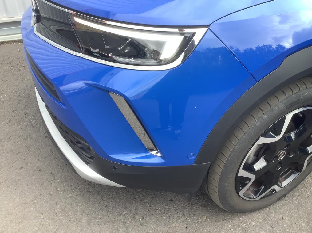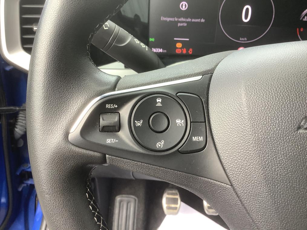 1 cle a telecommande et seconde cle rigide, 1 port USB a l'AV et 2 a l'AR, 5 appuie-tete reglables en hauteur, 6 HP, Accoudoir conducteur avec porte-gobelet, Aide active au maintien au centre de la voie, Aide active au maintien dans la voie, Aide au demarrage en cote, Aide au freinage d'urgence, Aide au stationnement AV et AR, Airbags frontaux et lateraux conducteur et passager AV, rideaux, Alerte anti-somnolence, Alerte d'angle mort, Alerte de sous-gonflage des pneumatiques, Allumage automatique des feux de croisement, Apple CarPlay/Android Auto, Banquette AR rabattable 1/3-2/3, Becquet de toit AR noir, Calandre Opel Vizor avec contour noir, Camera de recul panoramique 180°, Capteur de pluie, Ciel de pavillon noir, Climatisation automatique monozone, Combine d'instrumentation numerique 12", Commutation automatique des feux, Controle electronique de stabilite (ESP), Coquilles de retroviseurs peintes en noir, Decors interieur Erino & Liquid Palladium, Detection de non-bouclage des ceintures de securite aux places AV, Direction assistee electrique, Ecran tactile 10'' couleur HD, Entree et demarrage sans cle, Feux diurnes Eco-LED, Fixations Isofix aux places laterales AR, Fonction Bluetooth (appels et streaming audio), Frein de parking electrique, Grille inferieure - Noir graine, Jantes en alliage 18" - Diamante, Kit anti-crevaison, Lame inferieure - Noir, Lame inferieure - Peinte, Lettrage et logo - Noir, Ligne de vitrage chromee, Module Opel Connect, Pack Visibilite LED, Pare-soleils avec miroir de courtoisie cote passager, Peinture bi-ton avec Toit Noir Karbon, Phares antibrouillards AV LED, Phares AR a LED, Phares AV ECO LED, Poignees de portes interieures chromees, Radio FM/AM/DAB+, Reconnaissance avancee des panneaux de signalisation, Reglage manuel des feux, Regulateur de vitesse adaptatif avec fonction Stop & Go, Réplication Smartphone, Retroviseur interieur electrochromatique, Retroviseurs exterieurs rabattables electriquement, Seconde cle avec telecommande, Sellerie Alcantara / TEP, Siege conducteur avec soutien lombaire reglable electriquement et fonction massante, Siege passager reglables dans 6 directions, Signature lumineuse en forme d'aile a LED, Systeme anti-collision a basse vitesse et detection des pietons, Systeme de freinage avec antiblocage des roues (ABS), Verrouillage automatique de la trappe a essence lors de la fermeture du vehicule, Verrouillage centralise avec telecommande et en roulant, Vitres AR surteintees, Vitres AV et AR electriques - systeme anti-pincement, Volant en TEP Vegan, Volant reglable en hauteur et en profondeur