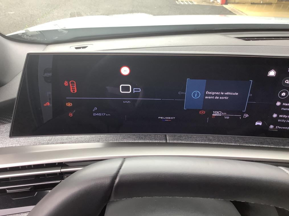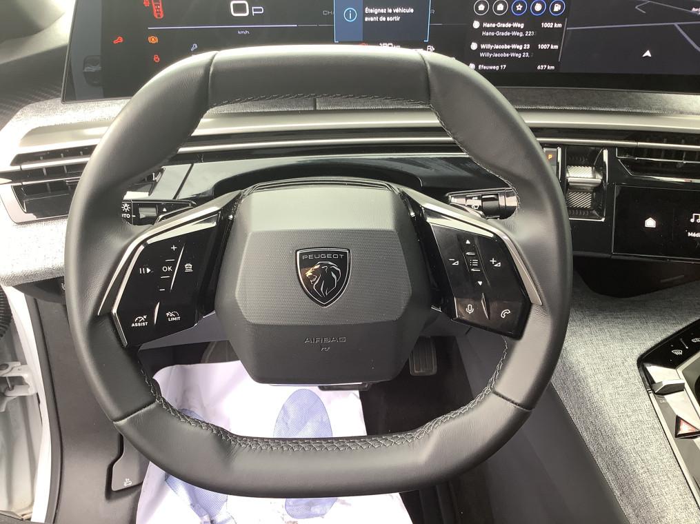 Pack 360° Vision & Drive Assist : Commutation automatique des feux de route, Super-condamnation des ouvrants, Drive Assist - Regulateur de vitesse adaptatif avec fonction Stop & Go, Retroviseurs exterieurs degivrants avec reglage et rabattement electriques, eclairage de seuil, Indexation a la marche AR avec memorisation, VisioPark 360°, Alarme (perimetrique, volumetrique et anti-soulevement), Volant compact cuir fleur lisse avec commandes integrees, Detection de trafic AR, Volant chauffant - 1 650 €, Pack Panoramic Navigation : PEUGEOT i-Connect Advanced - Connect Plus:, Recharge smartphone sans fil (puissance 15W), PEUGEOT i-Connect Advanced, PEUGEOT i-Cockpit panoramique avec ecran incurve et flottant 21'' HD, PEUGEOT i-Toggles virtuels avec 10 raccourcis personnalisables - 800 €, Sieges AV chauffants, siege conducteur certifie AGR - 400 €, Teinte de caisse métallisée - 1 200 €, Pare-brise chauffant - 200 €