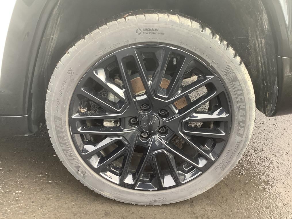 Accoudoir central AR avec porte-gobelets, Aide au stationnement AR ""Park Sense"", Aide au stationnement AV, Airbags frontaux, lateraux de type rideau avec airbag passager neutralisable, Alarme périmétrique, Apple CarPlay / Android Auto, Banquette AR 60/40 rabattable a plat, Banquette AR rabattable 40/20/40 a plat, Barres de toit longitudinales, Bas de caisse couleur carrosserie, Bas de caisse Gloss Black, Bluetooth, Camera de recul Parkview avec affichage dynamique, Capteur de luminosite (allumage des feux automatique), Chargeur sans-fil pour smartphone, Climatisation automatique bi-zone avec aérateur aux places AR, Combine d'instrumentation numerique configurable a ecran TFT de 10,25"", Commandes audio au volant, Condamnation automatique des portes en roulant, Detecteur de somnolence, Enter-N-Go : systeme d'ouverture et de demarrage sans cle, Essuie-glace vitre AR, Essuie-glaces automatiques (capteurs de pluie), Feux antibrouillard LED, Feux LED avec signature specifique, Frein de stationnement electrique avec aide au demarrage en cote, Freinage autonome d'urgence avec detection pietons et cyclistes, Hayon electrique mains-libre, Jantes en alliage Gloss Black 19"" 235/45 R19 Pneumatiques 3 saisons, Jeep Wave - programme de fidelite premium avec 2 ans d'entretien, Limiteur de vitesse intelligent, Navigation GPS avec informations sur les panneaux de signalisation, Prise 12V a l'AR et dans le coffre, Prise de courant auxiliaire 230V, prise USB type A et C, Prises USB type A et C, Projecteurs antibrouillard AV à LED, Projecteurs AR a Signature LED, Radar de recul, Radio DAB , Regulateur de vitesse adaptatif avec fonction Stop&Go, Retroviseur interieur photochromique, Retroviseurs exterieurs degivrants, reglables et rabattables electriquement, Sellerie en Cuir, Siege conducteur a reglage lombaire electrique 4 positions, Siege conducteur et passager a reglage manuel 6 positions, Smartbeam : commutation automatique feux de route/feux de croisement, Start & Stop, Systeme anti-louveoiment en conditions de tractage, Systeme anticollision actif, Systeme audio 6 HP, Systeme audio Uconnect, Systeme d'affichage de la pression des pneus, Systeme d'avertissement de franchissement de ligne avec correction, Systeme d'infodivertissement ""UConnect 5"" a ecran tactile 10,1"", Systeme de reconnaissance des panneaux de signalisation, Systeme preventif anti retournement (ERM), Toit noir, Trappe de carburant a verrouillage electrique, Uconnect Service, Vitres et lunette AR surteintees"