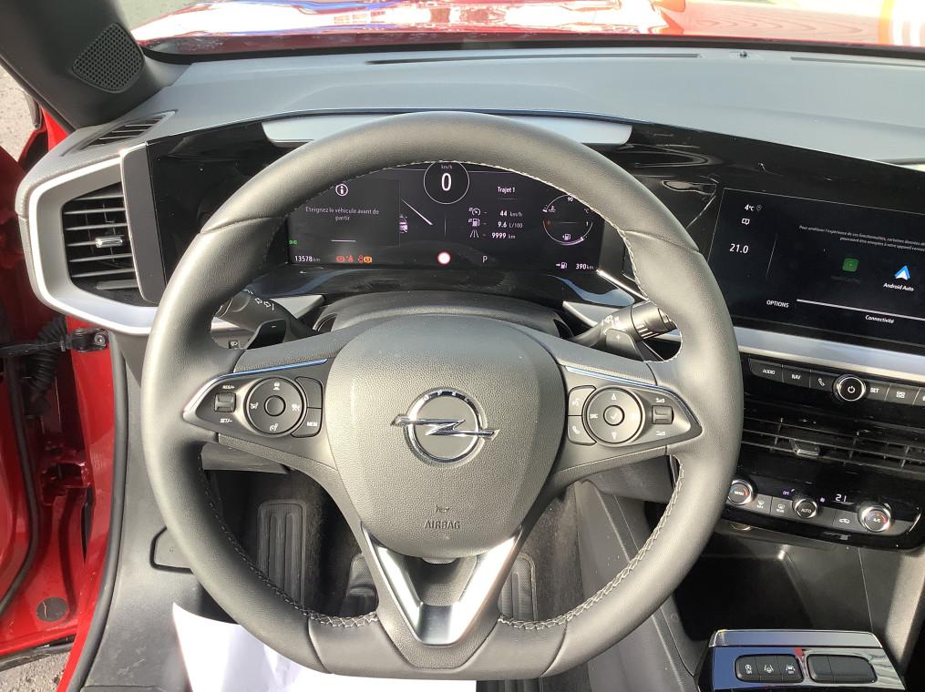 1 cle a telecommande et seconde cle rigide, 1 port USB a l'AV et 2 a l'AR, 5 appuis-tete reglables en hauteur, Accoudoir conducteur avec porte-gobelet, Aide active au maintien dans la voie, Aide active au maintien et positionnement dans la voie, Aide au demarrage en cote, Aide au freinage d'urgence, Aide au stationnement AV/AR, Airbags frontaux et lateraux conducteur et passager AV, rideaux, Alerte anti-somnolence, Alerte d'angle mort, Alerte de sous-gonflage des pneumatiques, Allumage automatique des feux de croisement, Apple CarPlay/Android Auto, Banquette AR rabattable 1/3-2/3, Becquet de toit AR noir, Calandre Opel Vizor avec contour noir, Camera de recul panoramique 180°, Capteur de pluie, Ciel de pavillon noir, Climatisation automatique monozone, Combine d'instrumentation numerique 12", Commutation automatique des feux, Controle electronique de stabilite (ESP), Coquilles de retroviseurs peintes en noir, Decors interieur Erino & Liquid Palladium, Ecran tactile 10'' couleur, Entree et demarrage sans cle, Feux diurnes Eco-LED, Fixations Isofix aux places laterales AR, Fonction Bluetooth (appels et streaming audio), Frein de parking electrique, Jantes en alliage 18" - Diamante, Kit anti-crevaison, Module Opel Connect, Pack Visibilite LED : Retroviseur interieur electrochromatique, Allumage et commutation automatique des feux de route/croisement, Capteur de pluie, Palettes au volant, Pare-soleils avec miroir de courtoisie cote passager, Pedalier chrome, Peinture bi-ton avec Toit Noir Karbon, Phares antibrouillards AV LED, Phares AR a LED, Phares AV ECO LED, Poignees de portes interieures chromees, Reconnaissance avancee des panneaux de signalisation, Reglage manuel des feux, Regulateur de vitesse adaptatif, Retroviseur interieur electrochromatique, Retroviseurs exterieurs electriques et degivrants, Retroviseurs exterieurs rabattables electriquement, Seconde cle avec telecommande, Sellerie Alcantara / TEP, Siege conducteur reglable dans 6 directions avec reglage lombaire reglable electriquement, Signature lumineuse en forme d'aile a LED, Systeme anti-collision a basse vitesse et detection des pietons, Systeme de freinage avec antiblocage des roues (ABS), Systeme Start/Stop, Verrouillage automatique de la trappe a essence lors de la fermeture du vehicule, Verrouillage centralise avec telecommande et en roulant, Verrouillage des ouvrants en roulant, Vitres AR surteintees, Vitres AV et AR electriques - systeme anti-pincement, Volant cuir multifonctions 3 branches a meplat, Volant en TEP Vegan, Volant reglable en hauteur et en profondeur