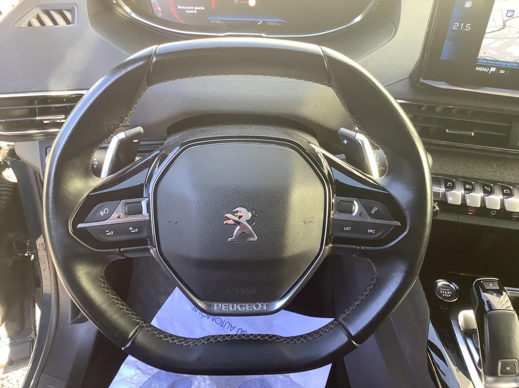 6 airbags (Frontaux adaptatifs, lateraux AV, rideaux AV/AR), Acces et demarrage mains libres, Accoudoir central AV a ouverture papillon, avec compartiment de rangement eclaire et refrigerable, Air conditionne automatique bi-zone avec aerateurs aux places AR, Appuis-tete a securite optimisee reglables en hauteur (conducteur, passager et AR x3), Avertisseur de temps de conduite, Banquette AR rabattable 1/3 - 2/3 avec accoudoir central, trappe a skis, Calandre a damiers chromes, Coques de retroviseurs exterieurs Noir Perla Nera, Detection de sous-gonflage indirecte, Drive Mode : Choix de 2 modes de conduite (Eco ou Sport), Enjoliveur d'arc de pavillon en Inox Brillant, Enjoliveurs d'ailes AV chromes, Essuie-vitre AV avec systeme de lavage "Magic Wash", Feux AR a LED avec effet 3D, clignotants a defilement, Fonction "Mirror Screen" (Apple CarPlay / Android Auto ), Frein de stationnement electrique avec aide au demarrage en pente et serrage automatique, Garnissage TEP avec Tissu Colyn Mistral, Habitacle et ciel de pavillon Noir Mistral, Indicateur de rapport conseille, Jantes alliage 18" diamantees DETROIT bi-ton Gris Storm brillant, Kit de depannage de pneumatique : Compresseur 12 volts, flacon de produit de colmatage, anneau de remorquage, Kit de depannage de pneumatique : compresseur 12 volts, flacon de produit de colmatage, anneau de, Leve-vitres AV/AR electriques et sequentiels avec antipincement, Navigation 3D connectee avec ecran tactile capacitif 10" HD, Pack City 1 : Aide graphique et sonore au stationnement AV, Visiopark 1 : camera de recul avec restitution sur l'ecran tactile d'une vue AR et d'une vue de, Aide graphique et sonore au stationnement AR, Pack Eclairage d'ambiance - Eclairage a LED des caves a pied : Eclairage a LED des caves a pied, Pack Safety Plus : Freinage d'urgence automatique par camera, Commutation automatique des feux de route / feux de croisement, Systeme de surveillance d'angle mort, Alerte attention conducteur, Alerte active de franchissement involontaire de ligne et bas cote, Alerte Risque de Collision (Distance Alert), Pack Visibilite : Allumage automatique des feux de croisement, Eclairage d'accompagnement automatique, Essuie-vitre AV a declenchement automatique, Pares-soleil avec miroirs de courtoisie eclaires, Passages de roues rapportes Noir Mat, Peugeot i-Cockpit avec combine tete haute numerique, volant compact multi-fonctions, Plafonniers AV/AR a LED avec 2 spots de lecture, Prise 12 V (x3 : zone connectique, AR de console et coffre), Projecteurs "Peugeot LED Technology" avec feux diurnes a LED sous projecteurs, Protecteurs de bas de portes avec inserts Inox Brillant, Reconnaissance etendue des panneaux de signalisation, Regulateur / limiteur de vitesse avec Preconisation Limitation de Vitesse, Retroviseur interieur photosensible, Retroviseurs exterieurs degivrants avec reglage et rabattement electriques, Retroviseurs exterieurs degivrants avec reglage et rabattement electriques,, Securite enfants electrique des vitres AR, Siege conducteur avec reglage lombaire, Sieges AV reglables en hauteur, Systeme stop & go couple avec l'assistance au positionnement sur la voie, Toggle Switches chromes (touches piano d'activation des fonctions de l'ecran tactile), Vitres laterales AR et lunette AR chauffante surteintees, Volant croute de cuir Mistral
