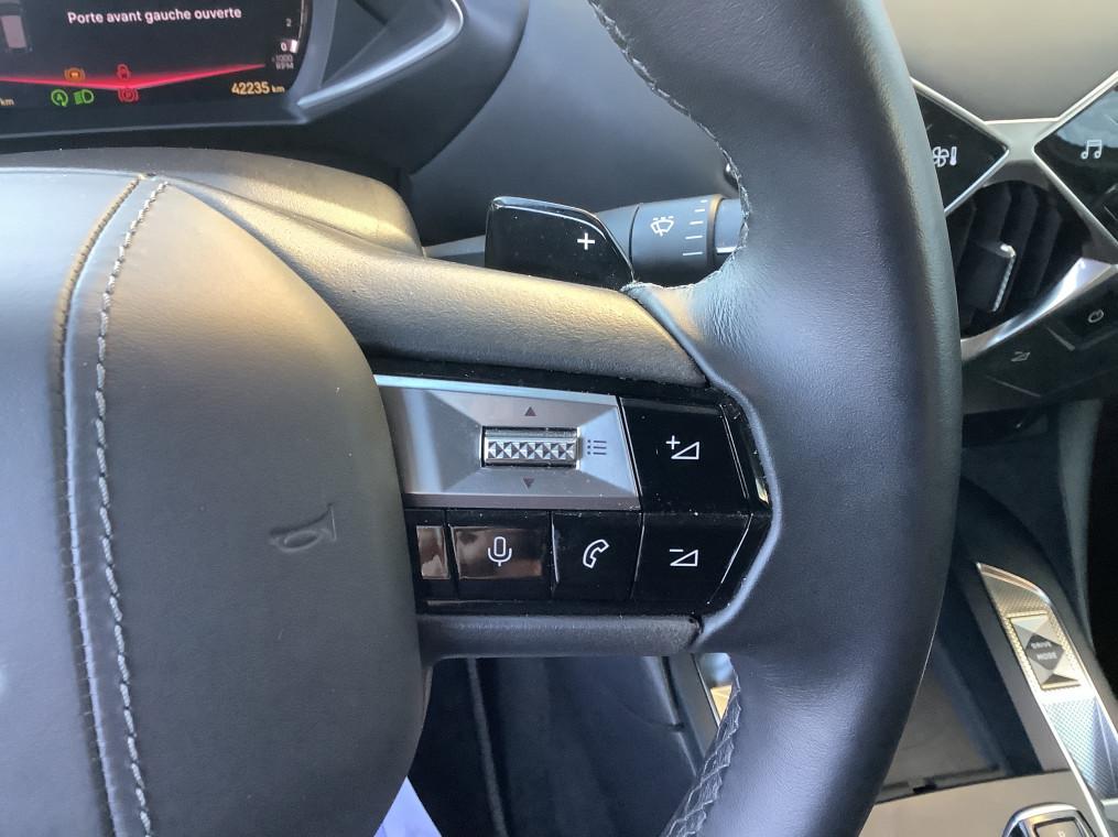 ABS avec repartiteur electronique de freinage (REF) et Aide au Freinage d'Urgence (AFU), ABS, AFU, ESP, REF, Acces et demarrage mains libres Proximity, Accoudoir central AV, Advanced Traction Control, Advanced Traction Control (Systeme de gestion de l'adherence sur tout type de route), Affichage tete haute, Affichage tete haute couleur, Aide au stationnement AV/AR, 360 Vision et surveillance d'angles morts, Airbags frontaux (passager deconnectable), lateraux AV et AR, rideaux AV et AR, Alarme perimetrique, volumetrique et fonction anti-soulevement, Alerte active de franchissement involontaire de ligne, Allumage automatique des phares, Badge DS sur le capot et et Logo DS sur la calandre, Badge DS sur le capot et et Logo DS sur la calandre, Banquette AR 2/3 - 1/3, Centre de roue Noir, Chargeur sans fil pour smartphone, Climatisation automatique, Combine numerique, Commutation automatique des feux de route, Condamnation centralisee, Controle dynamique de stabilite (ESP) avec antipatinage des roues (ASR), Detection de sous-gonflage, Double canule d'echappement chromee, DS IRIS SYSTEM avec Navigation 3D Connectee, DS Wings chromees, Eclairage d'accueil et d'accompagnement, Eclairage de cave a pieds a LED, Ecran tactile capacitif 10,3" HD, Enjoliveur de feux AR noir brillant, Essuie-vitre AV a declenchement et cadencement automatiques, Feux AR a LED, Frein de stationnement electrique automatique, Freinage d'urgence automatique pilote par camera et radar, Grille de calandre noir brillant avec pampilles chromees, Interieur Cuir Nappa Noir Basalte : Ciel de pavillon Gris Galet, Decor Cuir Nappa Art Basalte, Volant Cuir fleur, Siege Cuir Nappa Art Basalte confection bracelet, Jantes alliage 18" NICE, Jonc superieur de volet Noir brillant avec lettrage 'DS AUTOMOBILES' en acier inoxydable, Lecheurs de vitres invisibles, Leve-vitres AV et AR electriques et sequentiels, Lunette AR degivrante, Mirror Screen sans fil via Wifi, Monogrammes AR chromes, Pack Confort : Surtapis AV/AR, Eclairage de cave a pieds a LED, Accoudoir central AV, Pare-soleils avec miroirs de courtoisie occultables eclaires a LED, Retroviseur interieur electrochrome sans cadre, Acces et demarrage mains libres Proximity, Pack dequipements pour la Securite, Pack Drive Assist : Aide au stationnement AV/AR et 360 Vision, DS Drive Assist, Reconnaissance etendue des panneaux de signalisation, Freinage d'urgence automatique pilote par camera et radar, Surveillance d'angles morts, Commutation automatique des feux de route, Pack Hiver : Pare-brise chauffant, Sieges AV chauffants, Gicleurs de pare-brise chauffants, Palettes au volant, Pare-brise chauffant, Pare-soleils avec miroirs de courtoisie occultables eclaires a LED, Pedalier en aluminium, Poignees de portes affleurantes, Poignees de portes affleurantes, Prise USB dans l'accoudoir central, Prise USB Data a l'AV, Prises 12 V, Projecteurs a LED, Radio numerique terrestre (DAB), Reconnaissance des panneaux de signalisation et preconisation, Rehausse manuelle du siege passager, Retroviseur interieur electrochrome sans cadre, Retroviseurs exterieurs electriques, degivrants et rabattables electriquement, Selecteur de mode de conduite, Sieges AV chauffants, Sieges AV confort, Surveillance d'angles morts, Vitres AR et lunette AR surteintees, Volant reglable en hauteur et profondeur